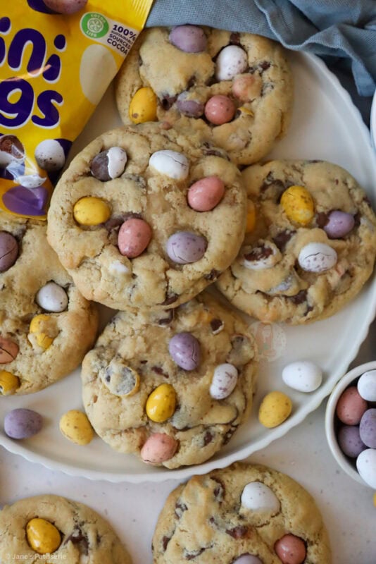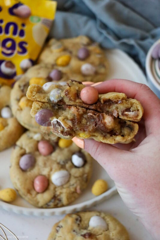 Anyway… MINI EGG NYC COOKIES!! This recipe was always going to happen.. how could it not?! 2020 brought the year of NYC Cookies to my blog, and they are still baked over and over.