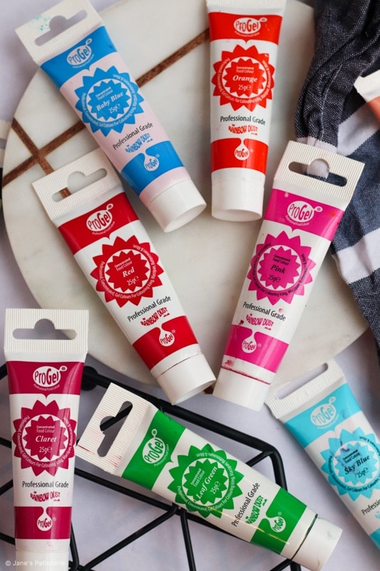 I love rainbow dust progel food colouring – I have used them for years, and I love them. I love that they are in a tube because they are easy to use – and get out what you want, without getting a spoon dirty and accidentally getting food colouring everywhere!