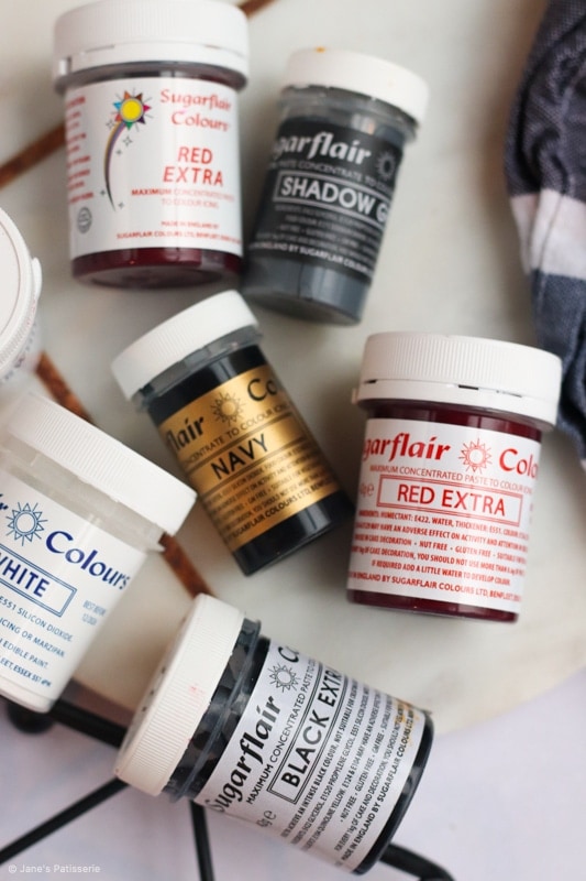 The black extra food colouring works the same – yes you need to start with a brown base to get something jet black, but other black food colourings will create a murky grey colour and not black.