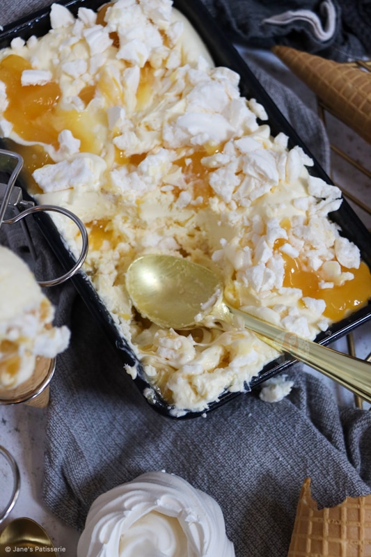 I found using lemon curd took the ice cream to another level and just made it more interesting – you can either use shop bought or you can use my homemade lemon curd recipe which works wonders.