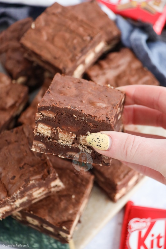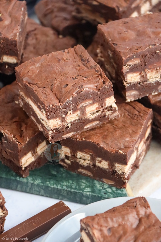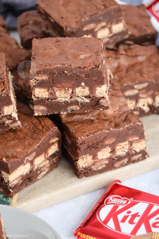 I was worried the brownies would be overdone as they didn’t wobble after the 25 minutes. However, they were lovely and gooey in the middle with a nice slight crinkled layer on top. They kept so well for a week and smelled divine! I loved the layer of KitKats which came through in each bite. Thank you so much for this recipe.