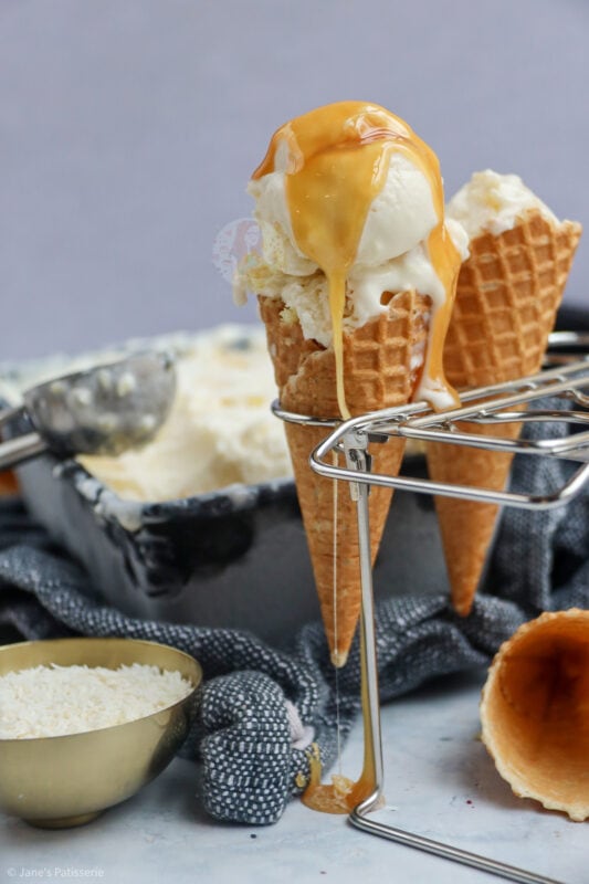 To serve a delicious ice cream like this, it does mean you have to take it out of the freezer about 10-15 minutes before serving as there are no additives to make it ‘soft serve’ or similar. I don’t think it’s too bad though, it is 100% worth it for something this delicious.