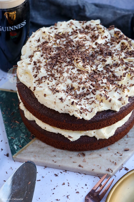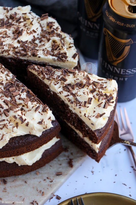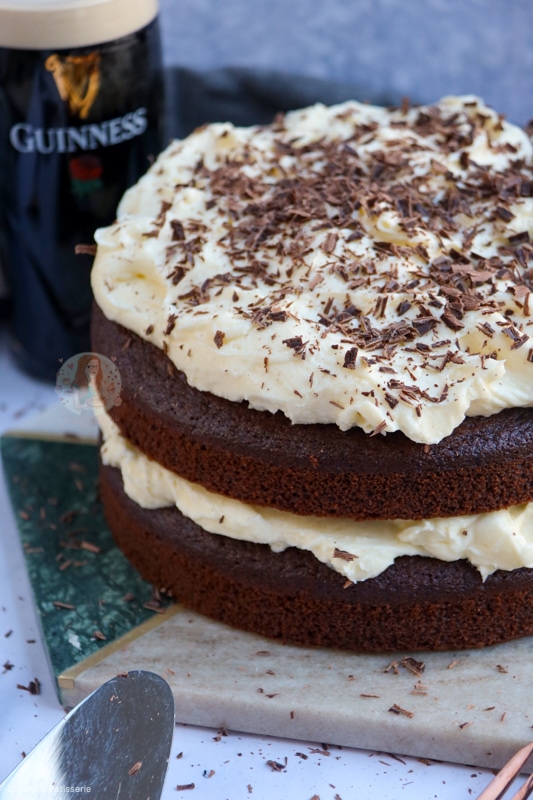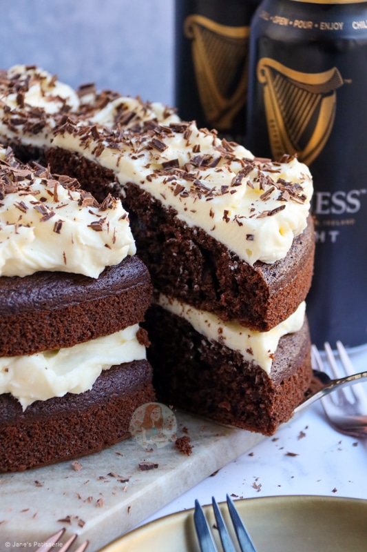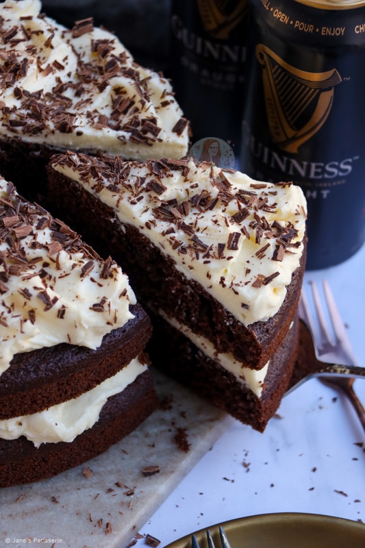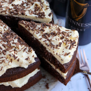 A fudgey and delicious chocolate Guinness cake – a delightful sponge with chocolate and Guinness, with a cream cheese frosting and more.