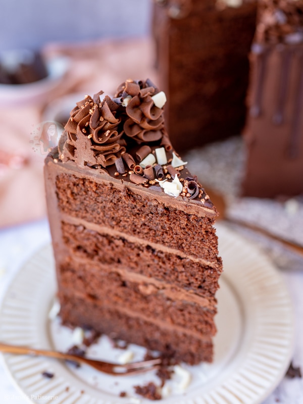 The cake itself is a basic chocolate cake – this is because I find it much sturdier to work with compared to a chocolate fudge cake sponge. A simple chocolate Victoria sponge recipe is the dream for me!