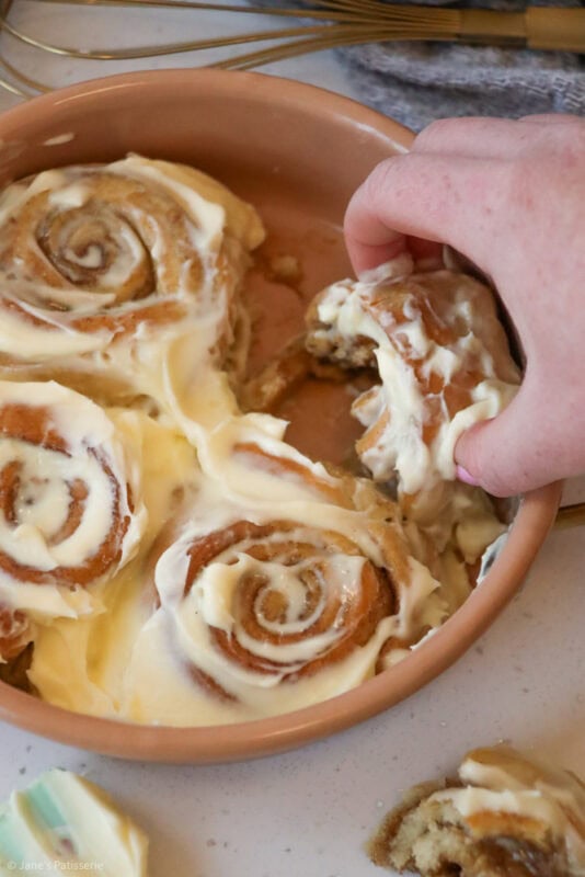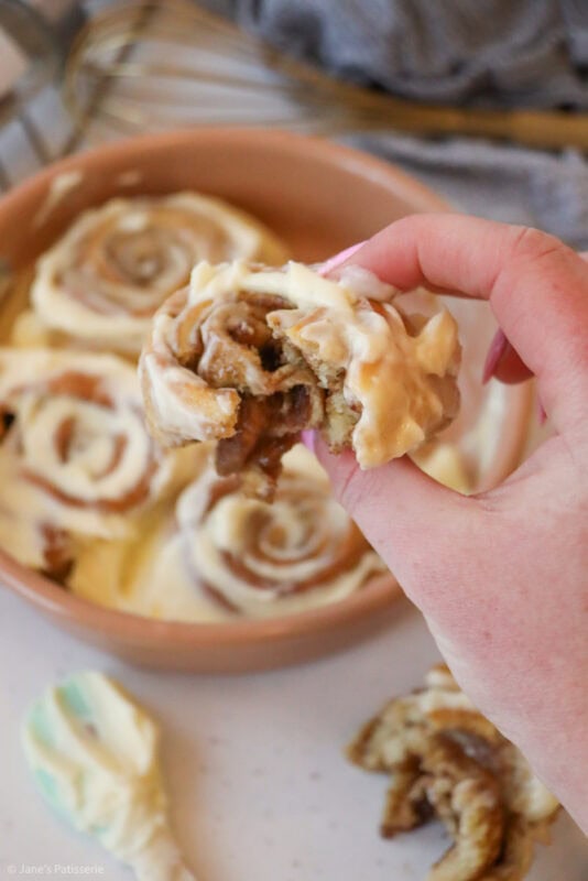 As I have mentioned before, the reason behind my Small Batch Bakes series is because sometimes you just want to make a smaller amount of a baked good, you might not want leftover, you might not have freezer space for spare, and sometimes you just fancy making a lil’ something – so this recipe is for that insane cinnamon roll craving that we all get… right?! RIGHT?!