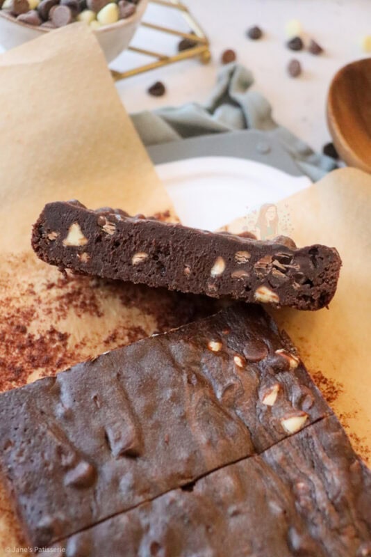 • Chocolate – it’s always important to use the dark chocolate (70%+ cocoa content) in the base brownie mix, but you can use any flavour chocolate you want for the chocolate chips you fold through at the end
